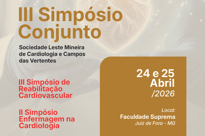 Nos dias 24 e 25 de abril de 2026, a Faculdade de Ciências Médicas e da Saúde de Juiz de Fora - SUPREMA será sede do III Simpósio Conjunto da Sociedade Leste Mineira de Cardiologia e Campo das Vertentes e do III Simpósio de Reabilitação Cardiovascular.