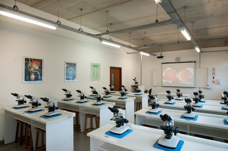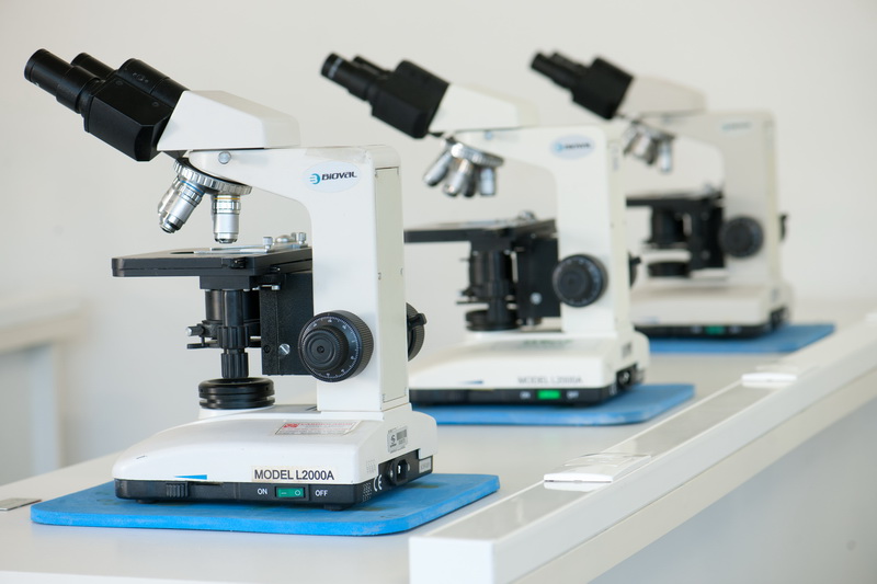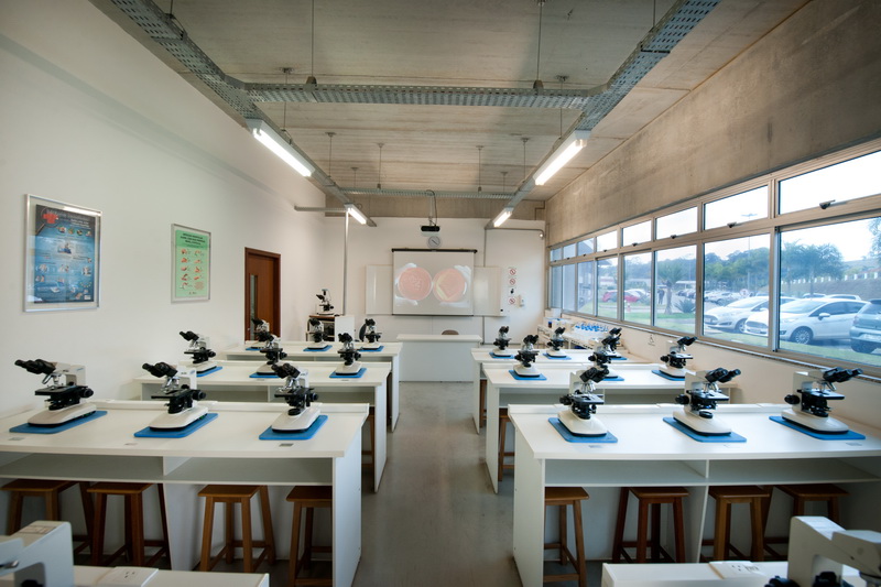 Os Laboratórios de Microbiologia, Parasitologia e Imunologia possuem dois ambientes compostos por pias, bancadas com bicos de Bünsen e microscópios. Possuem uma sala para preparo de meios de cultura e coloração de lâminas, contendo: autoclave; caixa com coleção de lâminas de microscopia para o estudo de microbiologia e de parasitologia; capela de fluxo laminar classe II; centrífuga; contador de colônias; cubas em aço inox; estufa incubadora; estufa para secagem; geladeira; lupas entomológicas e microscópio estereoscópio.